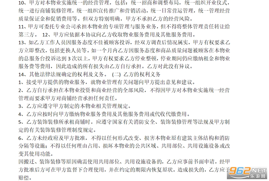 2、甲方应按照本协议约定的物业服务事项与标准提供相应的服务,但除甲方存在过错外,不承担对乙方及其雇员、顾客的人身损害及其财产的保管、保险义务。