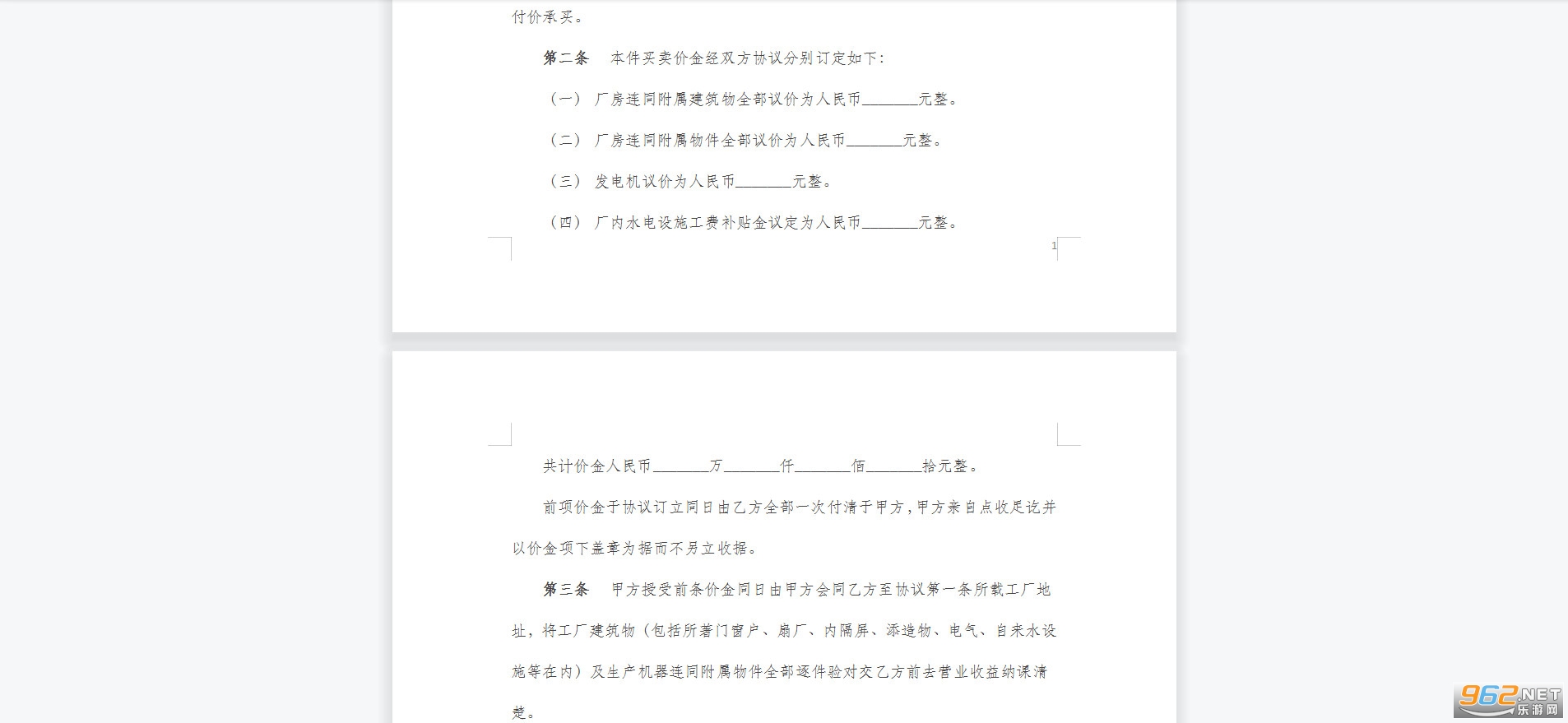 (二) 厂房连同附属物件全部议价为人民币_______元整。