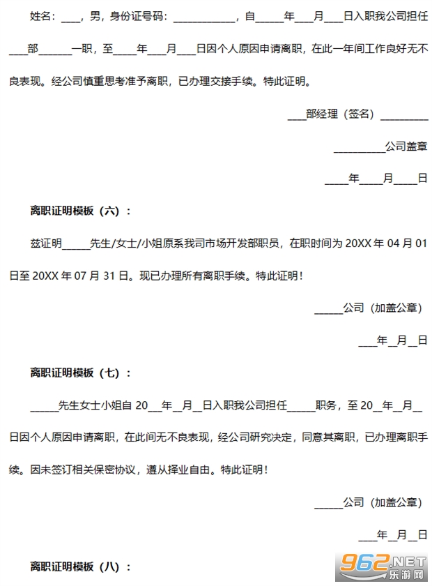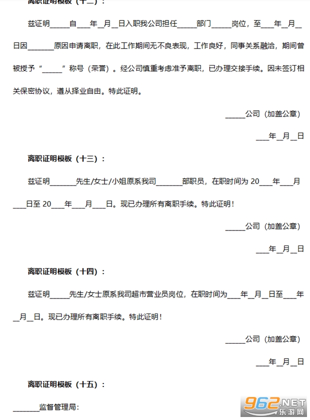 《离职证明模板》为大家带来15份比较正规简单的离职证明范本,有需求下载离职证明word格式以及doc格式的可以直接下载压缩包进行解压就能够得到了。有需求的话就来看看吧!