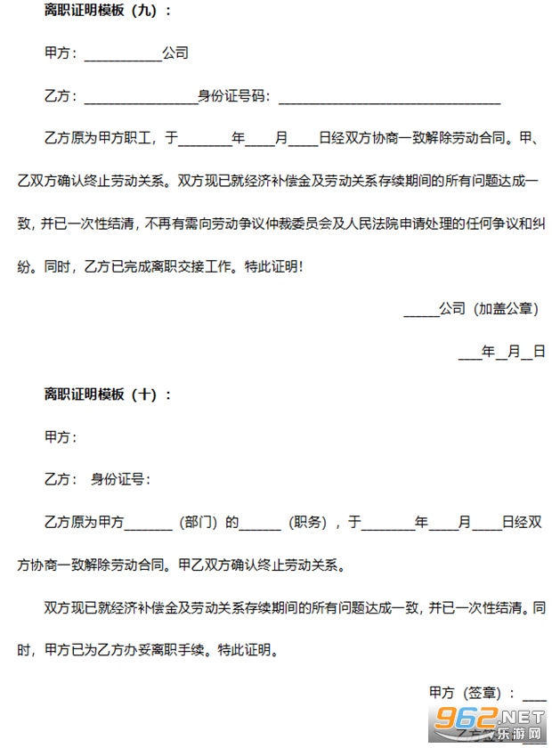 离职证明模板(十):