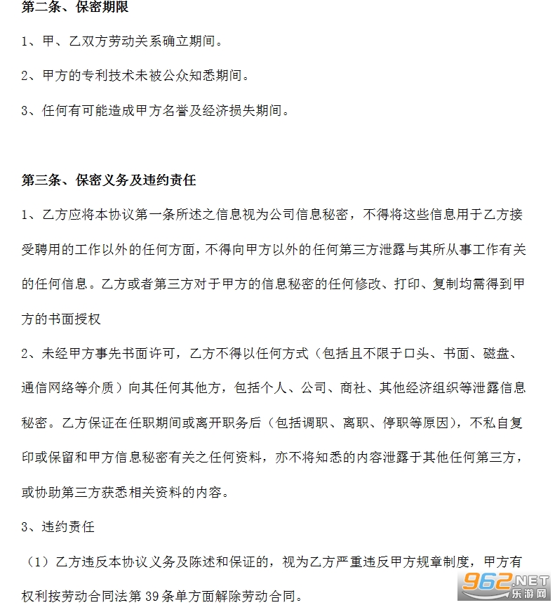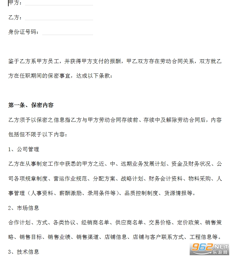 乙方须予以保密之信息指乙方与甲方劳动合同存续前、存续中及解除劳动合同后,内容包括但不限于以下内容: