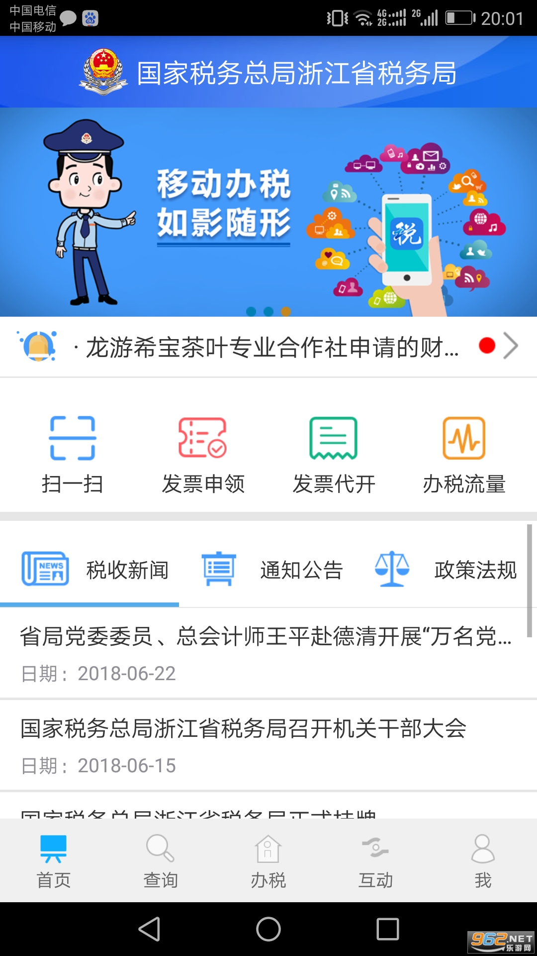 浙江税务APP分为首页、查询、办税、互动、“我”等五大模块,软件操作简便易懂。致力于为纳税人打造一个综合办税服务。