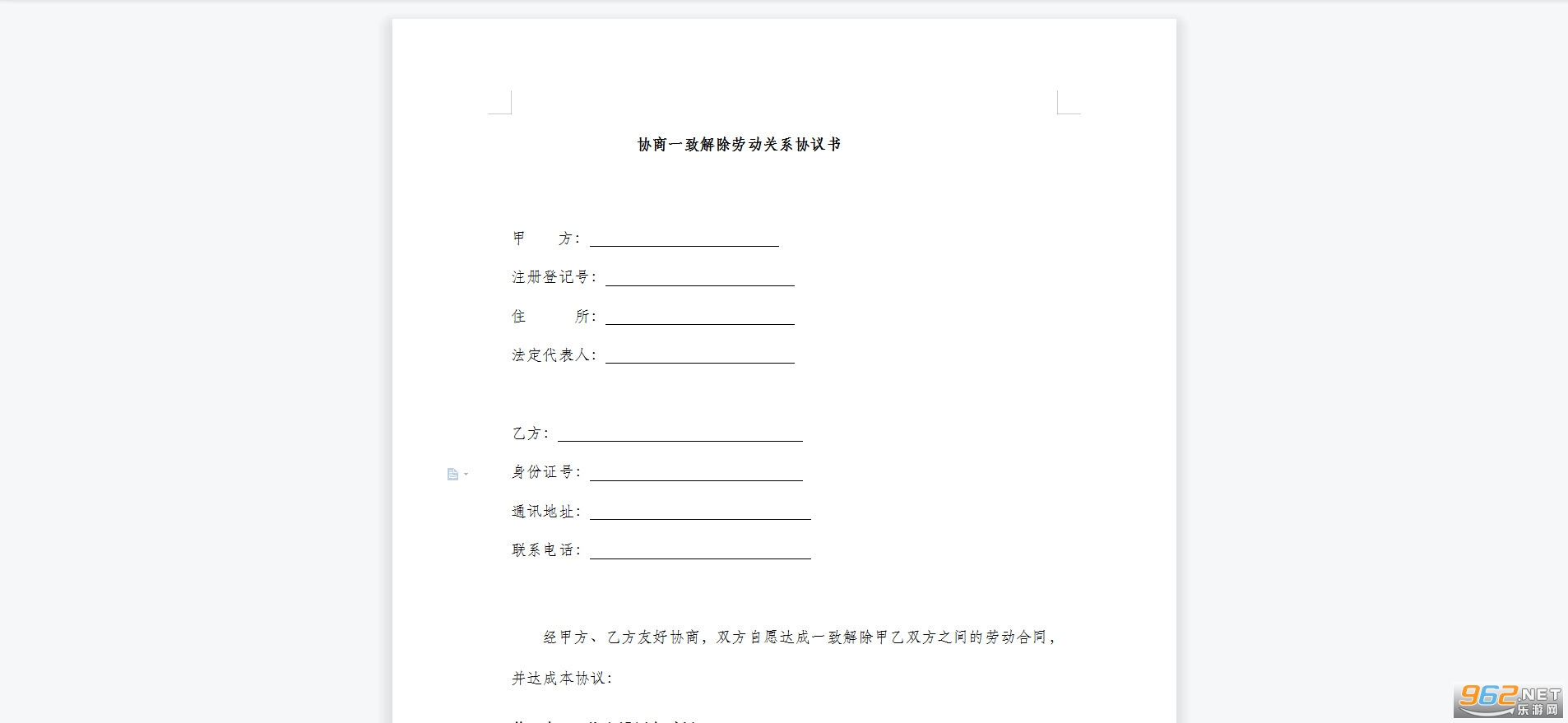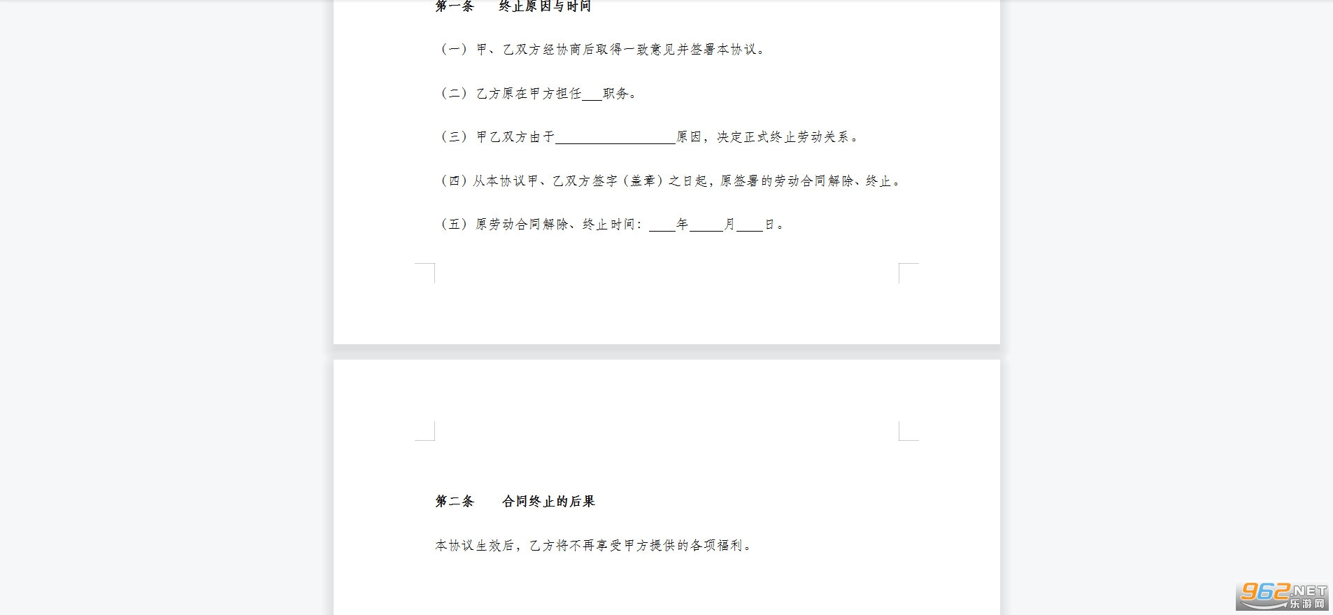 (三)甲乙双方由于 原因,决定正式终止劳动关系。