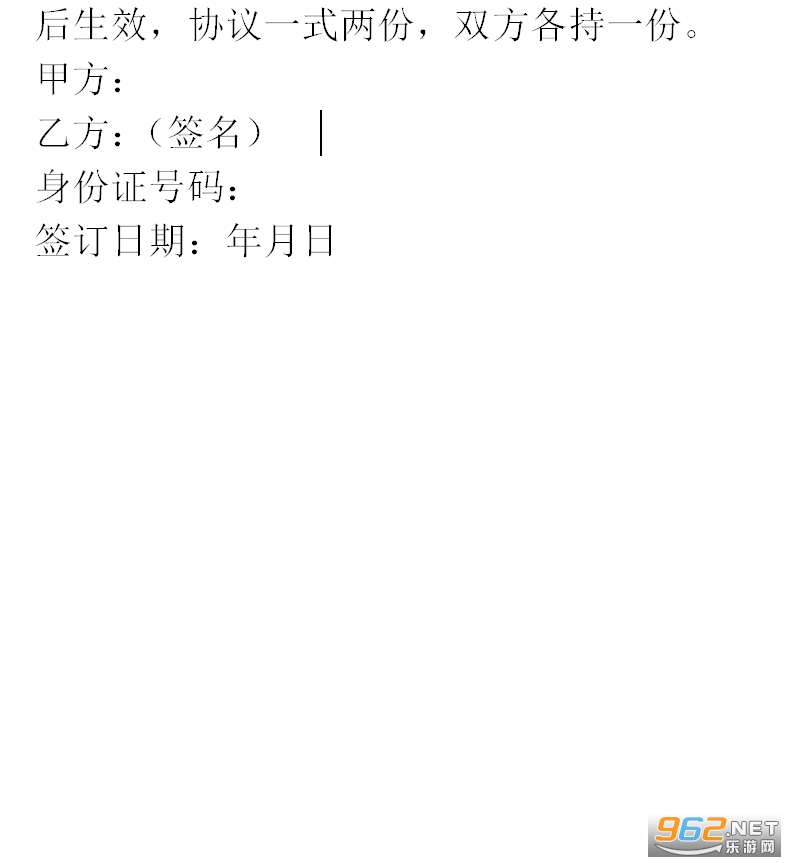 六、协议的效力和变更&8194;&8194;本协议自双方签字后生效,协议一式两份,双方各持一份。