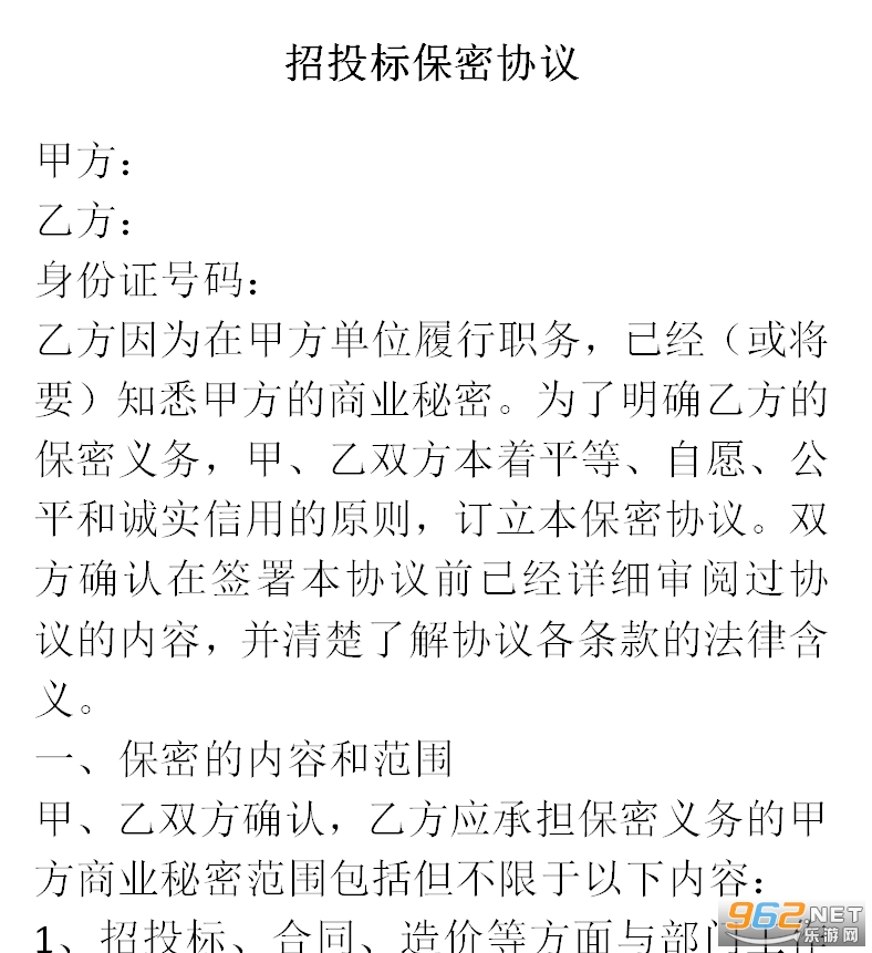 《招投标保密协议范本》是小编在网上收集到的一篇比较的简短的关于招投标的保密协议,写的还是很专业的,有需要的亲们可以直接下载,范本仅供参考,不可直接拿来使用,感兴趣的亲们赶紧下载吧。