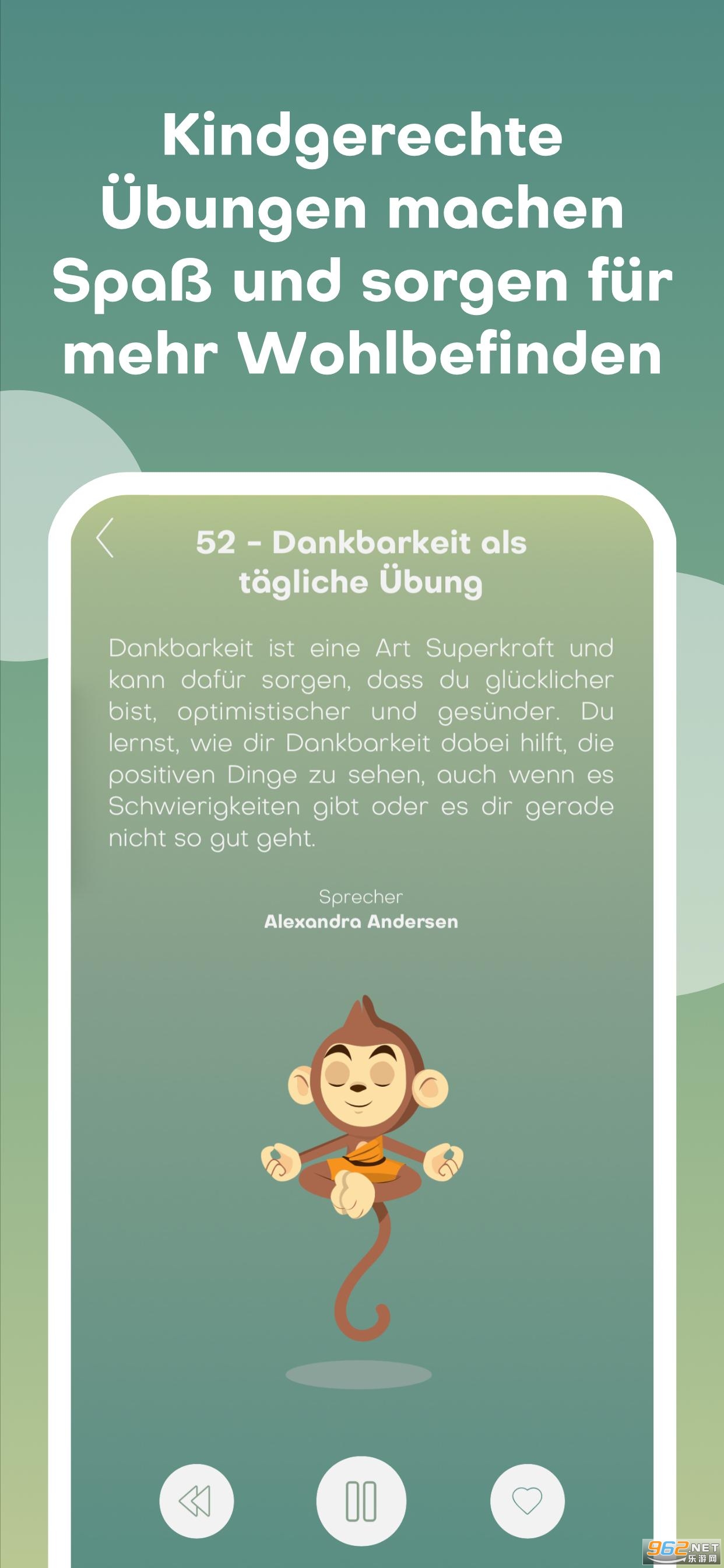 您的朋友 Boo 会陪伴您进行各种练习,并向您展示如何正念处理想法和感受,以及正念在经常紧张的日常生活中的重要性。来自儿童日常生活的例子使练习变得易于理解、有形,从而在实际应用中提供直接的好处。许多奇幻旅行和睡眠故事邀请您做梦、激发想象力并增强积极情绪。
