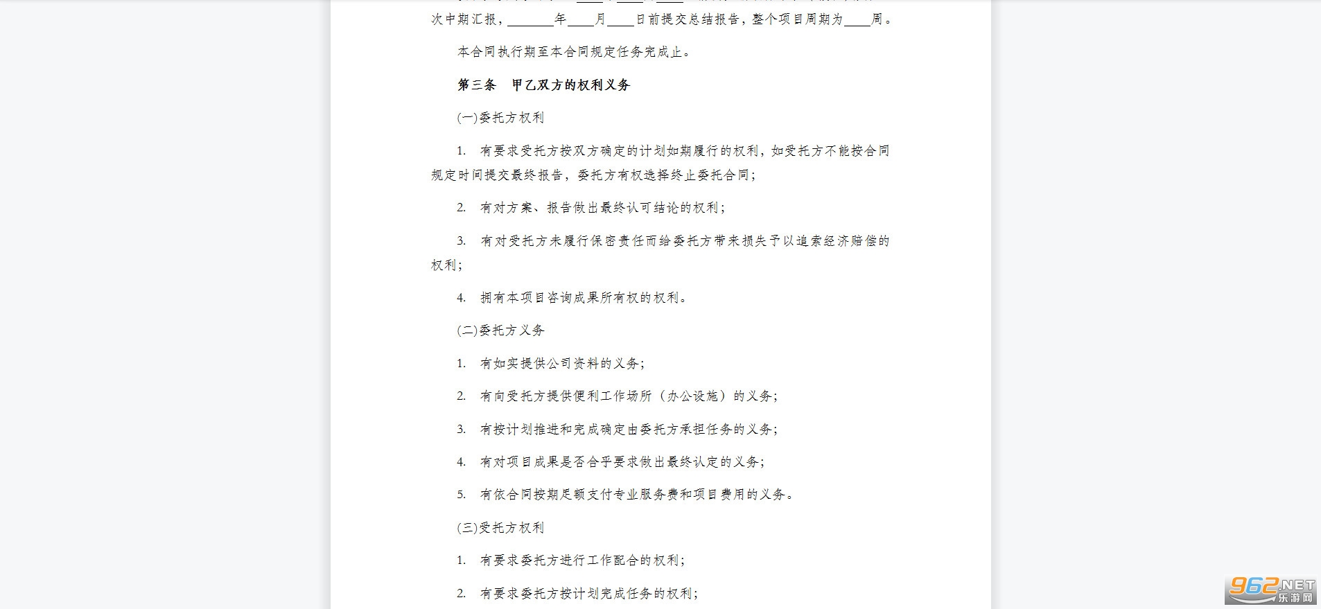 第三条 甲乙双方的权利义务