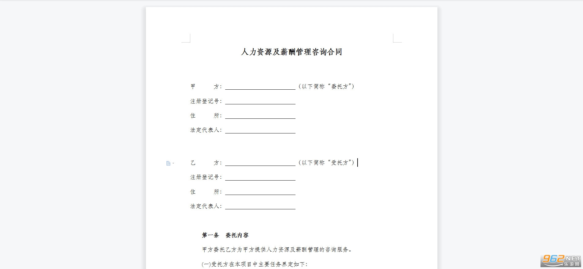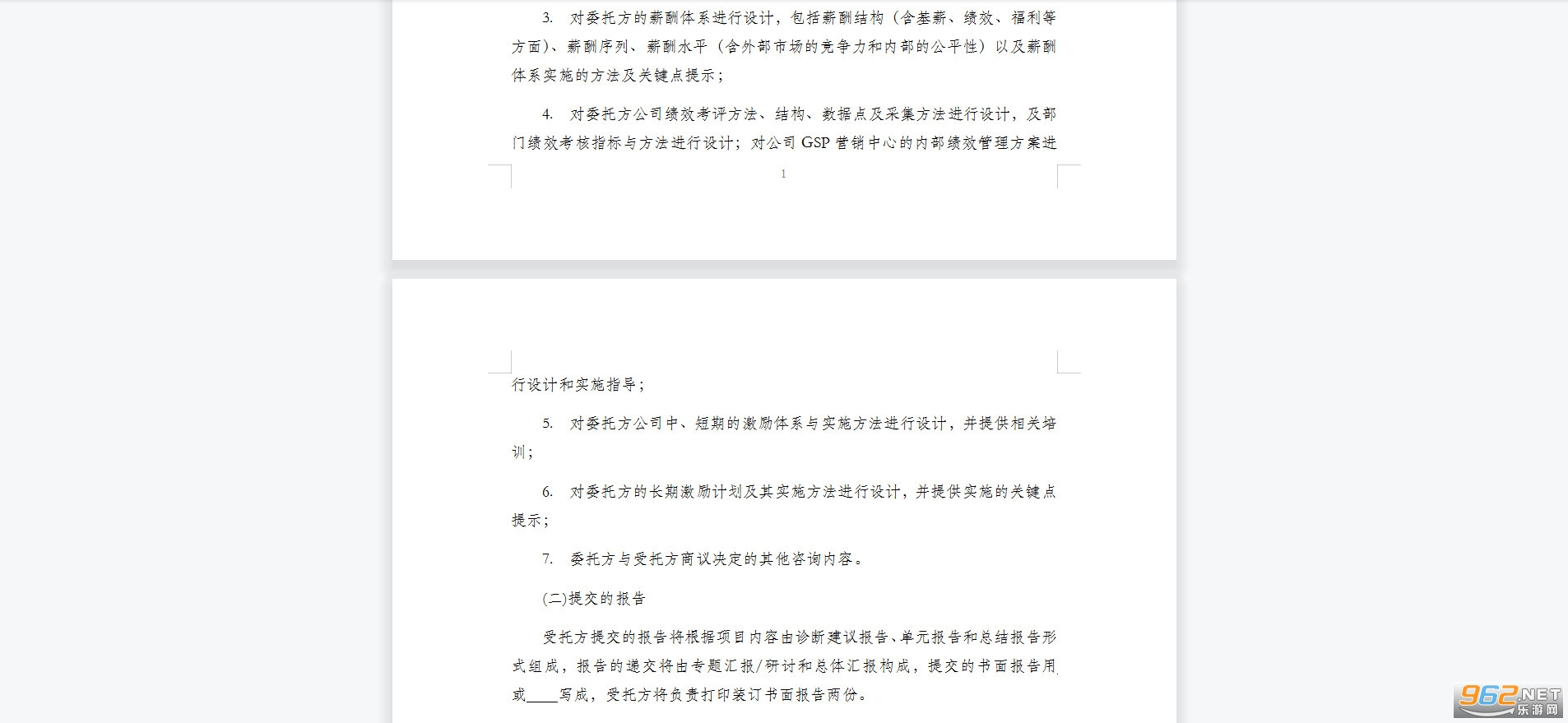 甲方委托乙方为甲方提供人力资源及薪酬管理的咨询服务。