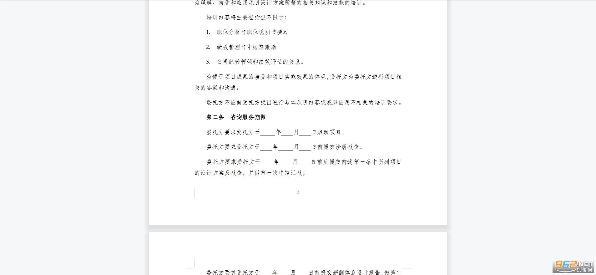 第二条 咨询服务期限