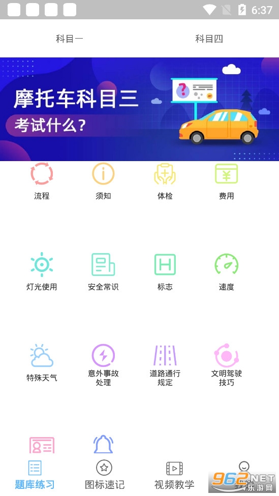 乐乐摩托车驾照考试一点通app是一款为广大驾驶员准备的驾考学习软件,其中包括科一到科四学习内容,乐乐摩托车驾照考试中有大量试题让你轻松掌握驾考知识,全方位的练习,让你轻松考过。