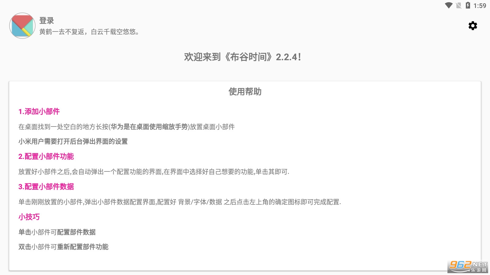 《布谷时间》是一款使用的桌面小工具软件,软件采用了极简的设计思路,同时还有着各种各样的工具可以进行设置调整,方便手机的使用,同时还有着各种各样的应用功能,软件的操作简单容易上手,同时还有着日程管理,让你从此不咕事件!