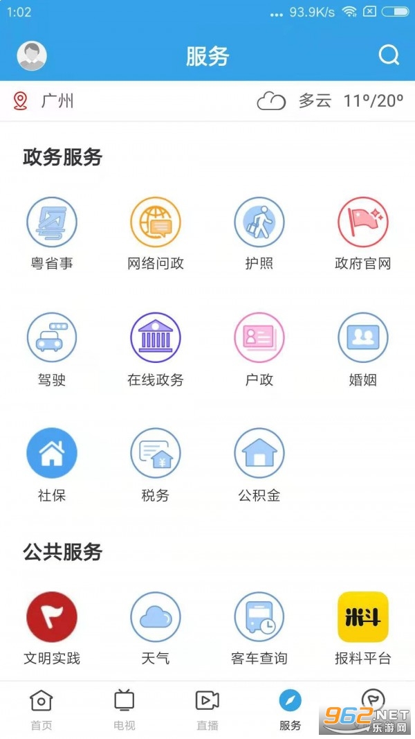 生活服务内容包含有天气查询,客车查询,违章查询等,一键定位城市;