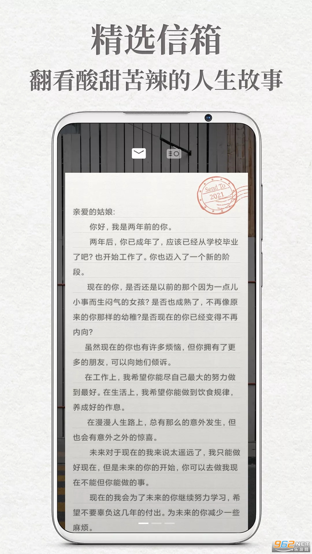 你是否曾想过, 给未来的自己或某人写一封信?这是一款能给未来写信的app。
