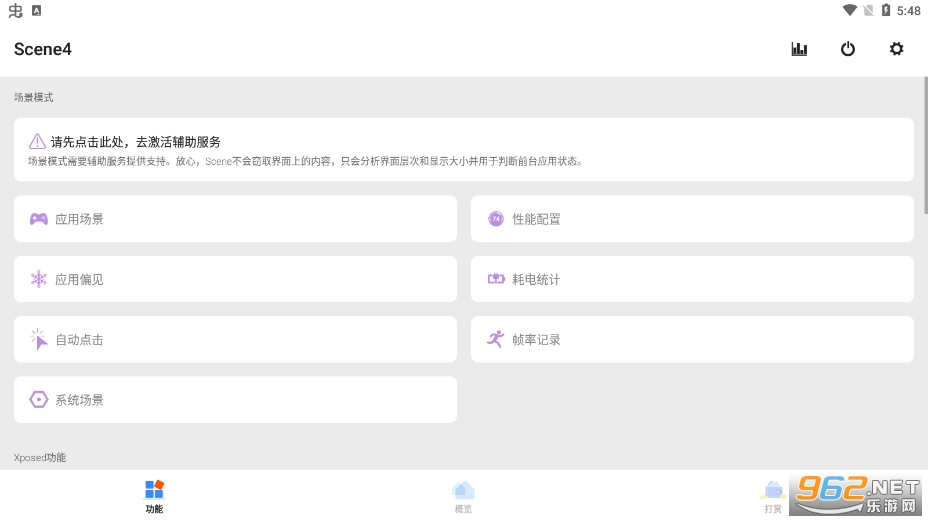 Scene是一款系统辅助小工具应用,简洁的界面加上简单的设置,这是一款在原微工具箱基础上做一些调整,改成动态响应、自动行为以及特殊权限管理等,需要ROOT。
