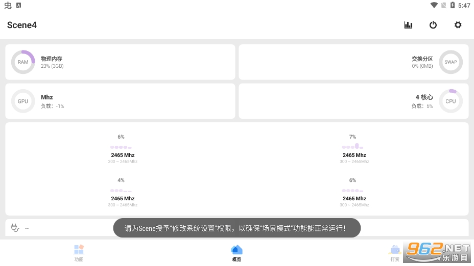 主要功能:场景模式应用管理备份还原SWAP设置CPU控制