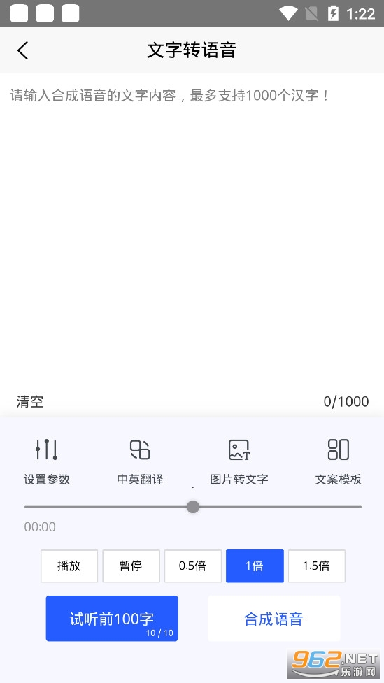 语音转换合成器最大的特点在于,可以实现同声在线翻译中英文转换,软件内部还有许多免费的文字转语音的模板文案选择使用。合成声音工作完成后,你可以试听前100字语音以确保合成的语音的最终效果完成度!