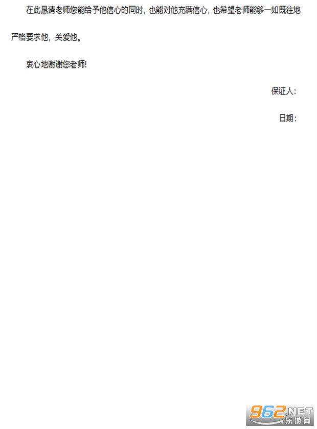 家长给老师的保证书篇3