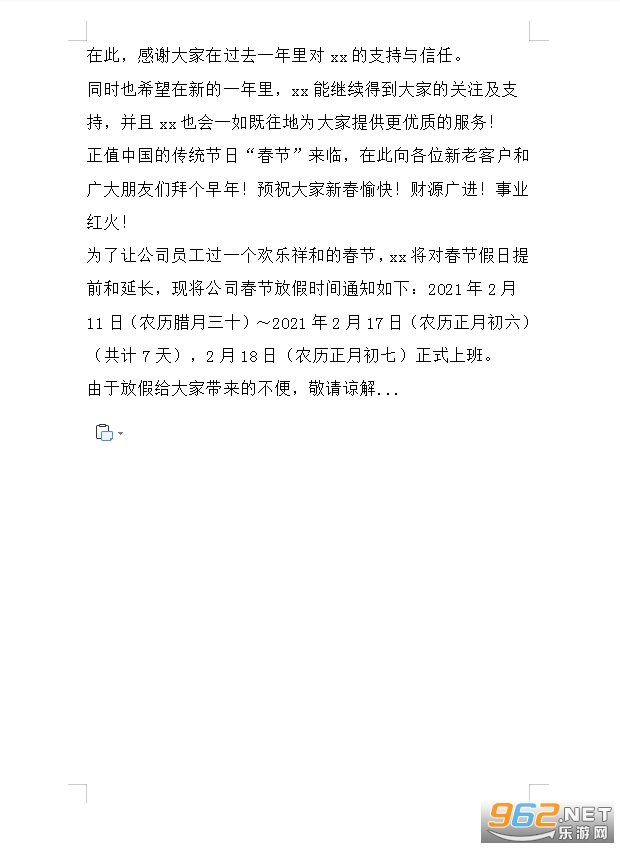 2026企业春节放假通知模板【二】