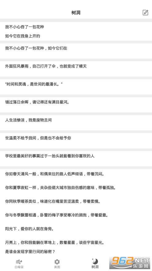 专门为有情绪或者压力大的朋友准备的解压神器,里面拥有多种不同的功能让大家去使用,包括治愈的声音,视频,温暖语录,自然中的风声,雨神,海浪,海鸥,温暖的电台,优美的图片,树洞等等,需要就下载吧!