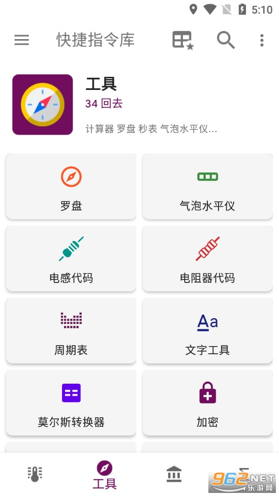 4、科学工具 - 气泡水平仪,指南针,量角器,电阻器代码,秒表,直尺,世界时间,日期转换器等。
