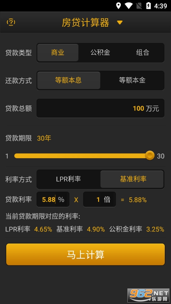 商业贷,公积金贷,组合贷等多种方式计算房贷。输入贷款金额、贷款期限和贷款利率,计算结果一目了然;