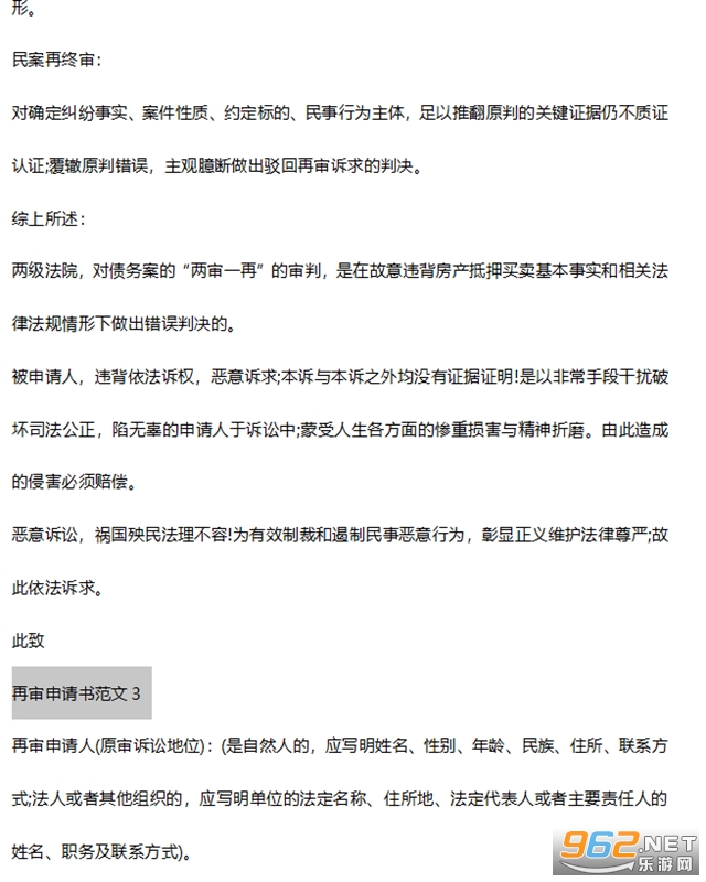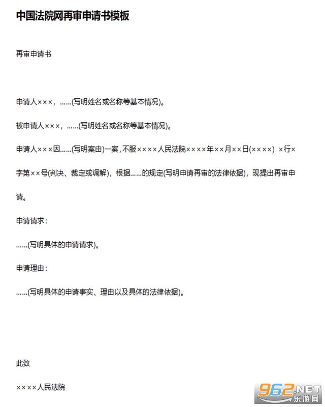 中国法院网再审申请书模板