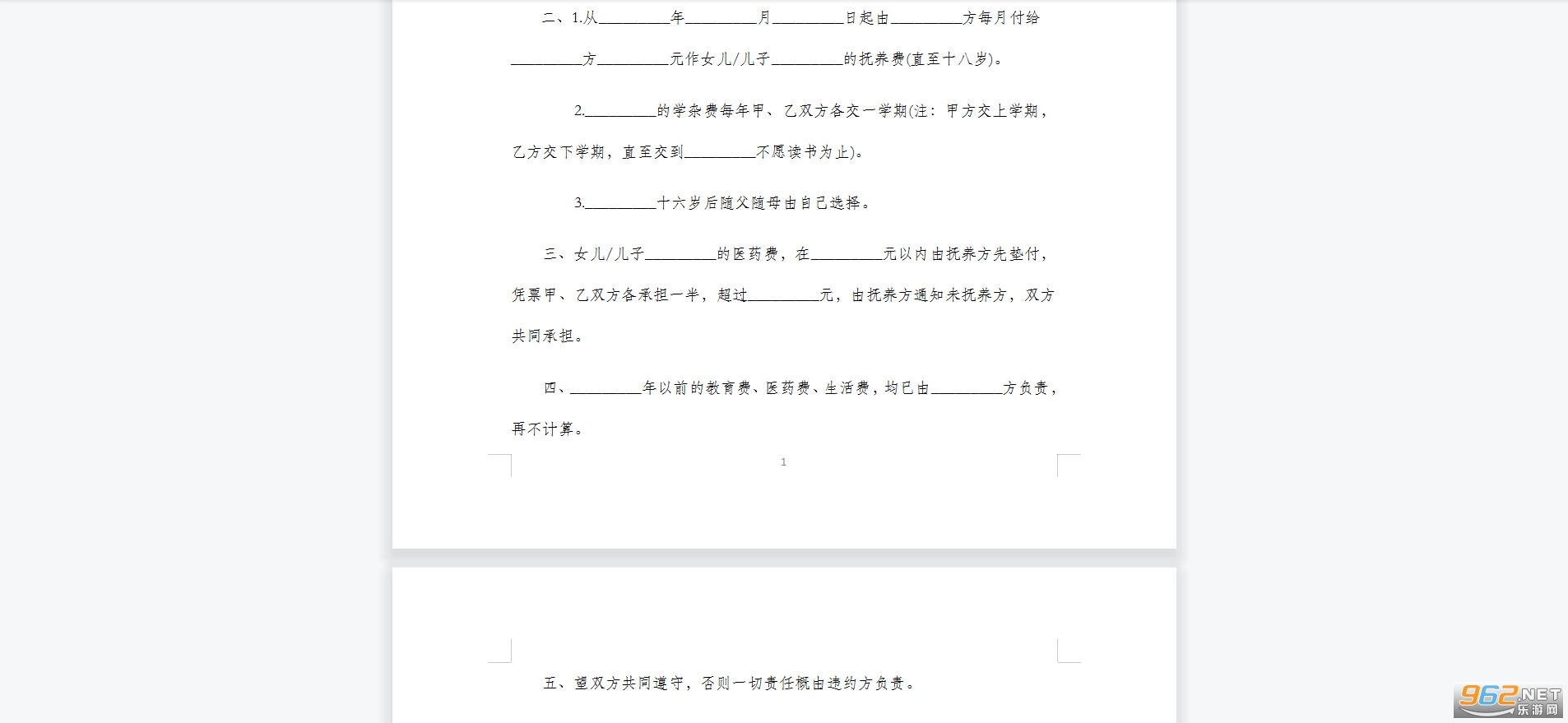 四、_________年以前的教育费、医药费、生活费,均已由_________方负责,再不计算。