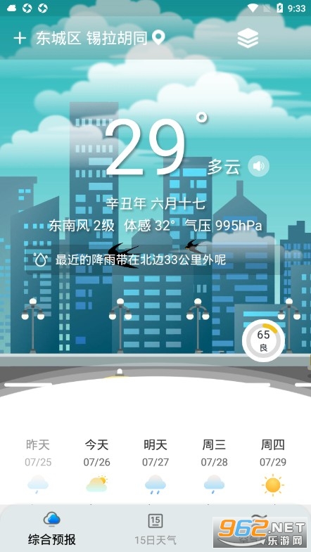 3、清爽的页面,还有动态的天气页面 ,拥有科技的化的感觉,多个空气数据,为你的出行保驾护航。