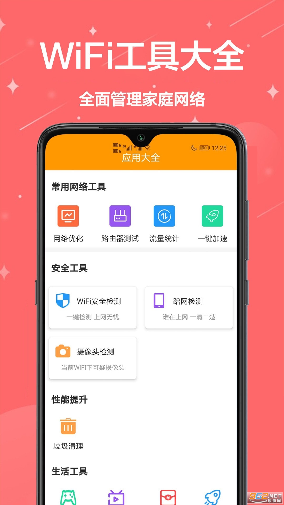 4、WiFi工具大全:全面保护上网环境,热点安全检测,保护信息安全;网络优化,一键加速,保证上网安全