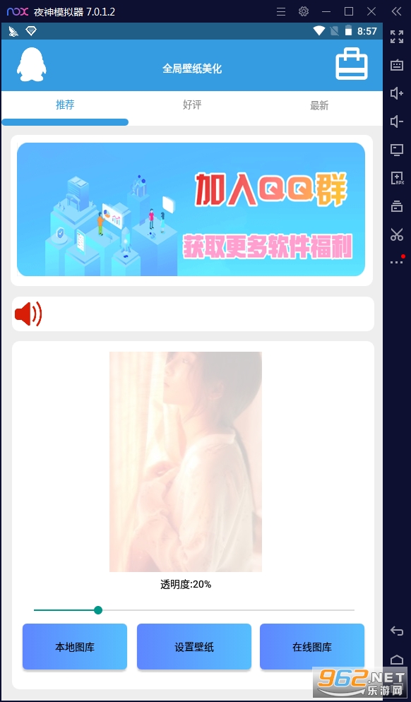 1、用户可以自定义壁纸的透明度,操作简单易上手;