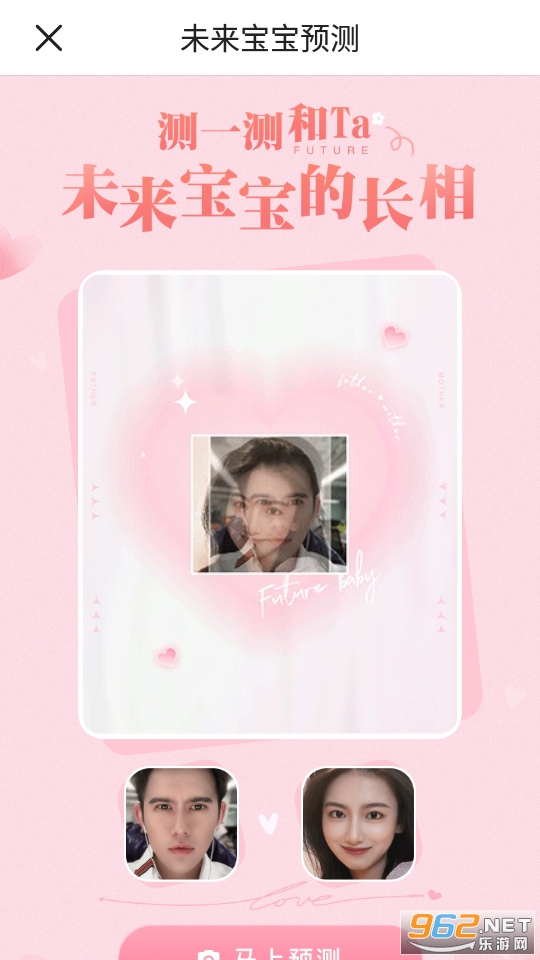 预测未来宝宝长相APP是一款相片合成类型的预测APP,在这款APP中,你将感受到更加有趣的精彩体验,通过两人夫妻的图片进行对比合成,让你清楚的了解两人的孩子会长成什么样子,这款APP的趣味性极强,是一款十分不错,而且极为有趣的软件。