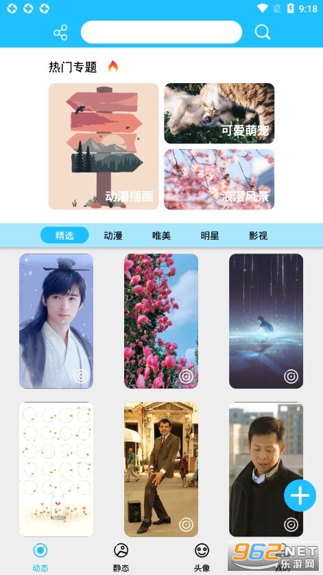 1、平台可以为用户们提供多种多样的壁纸,题材非常丰富,小清新风景、动画等题材的都有。