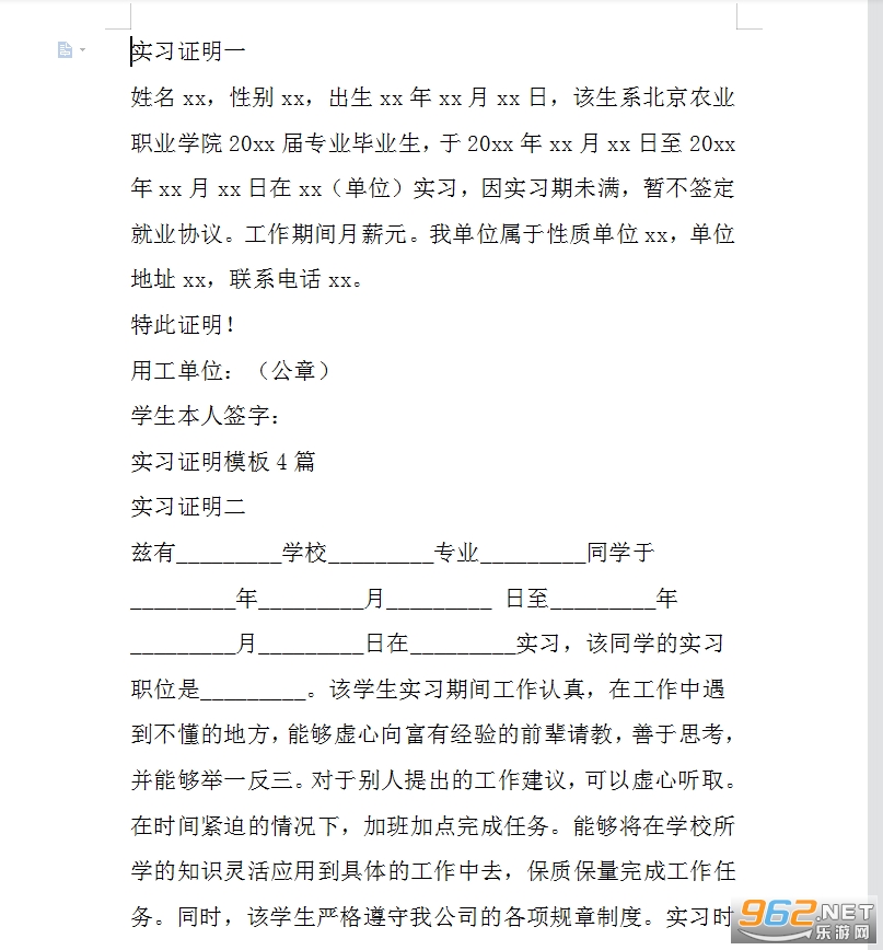 实习证明模板