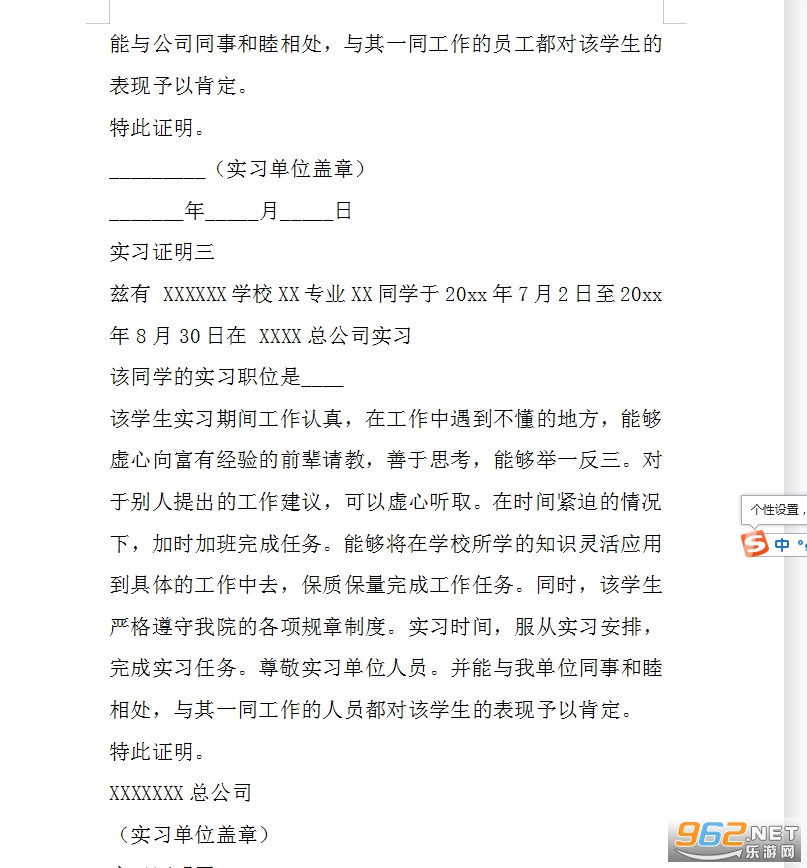 兹有 XXXXXX学校XX专业XX同学于20xx年7月2日至20xx年8月30日在 XXXX总公司实习