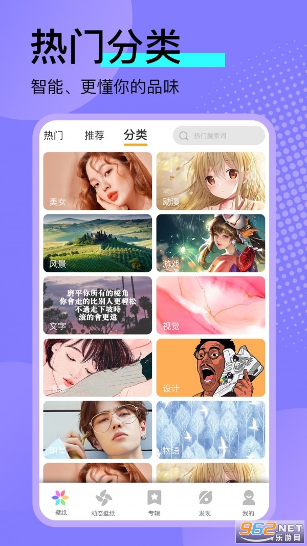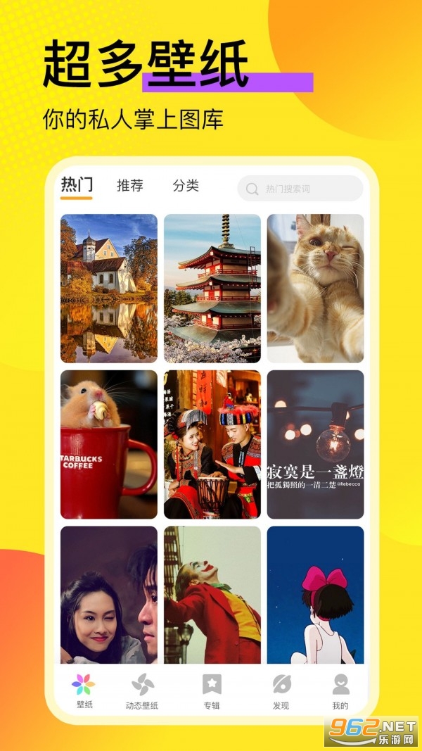 1、壁纸推荐大全app提供海量高清无水印的壁纸和各种热门的动态壁纸,用户还可以自制壁纸;