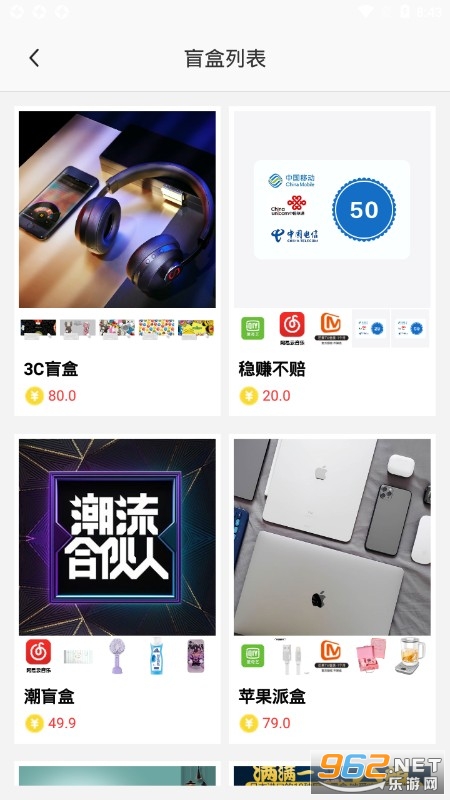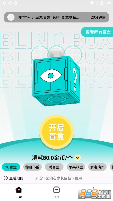 《开心盲盒》是一款手机欧气盲盒软件,一款电商购物平台,一键开启盲盒,各种好物随便拿,使用金币就能开启特定盲盒,得到里面的商品也是需要一定运气的,有时候运气好各种昂贵的电器可以拿到手,运气不好也会有一些生活中常用的商品获取。