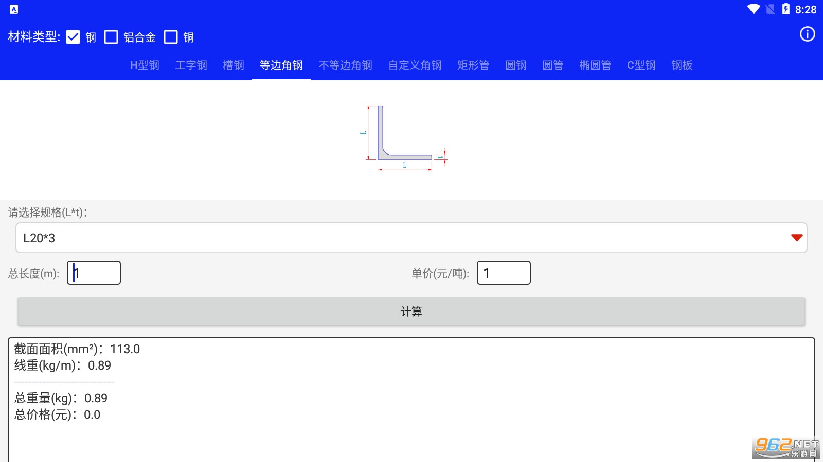 《钢材线重计算》是一款超好用的钢材计算软件,在这款软件中有着非常多的公式和模板可以选择,让你能够快速计算不同钢材的重量和各种数据,软件的操作简单容易上手,经常需要计算钢材的可以下载一个试试看。