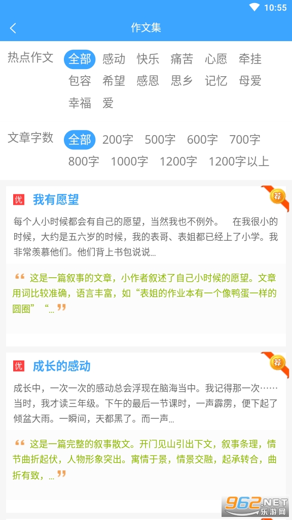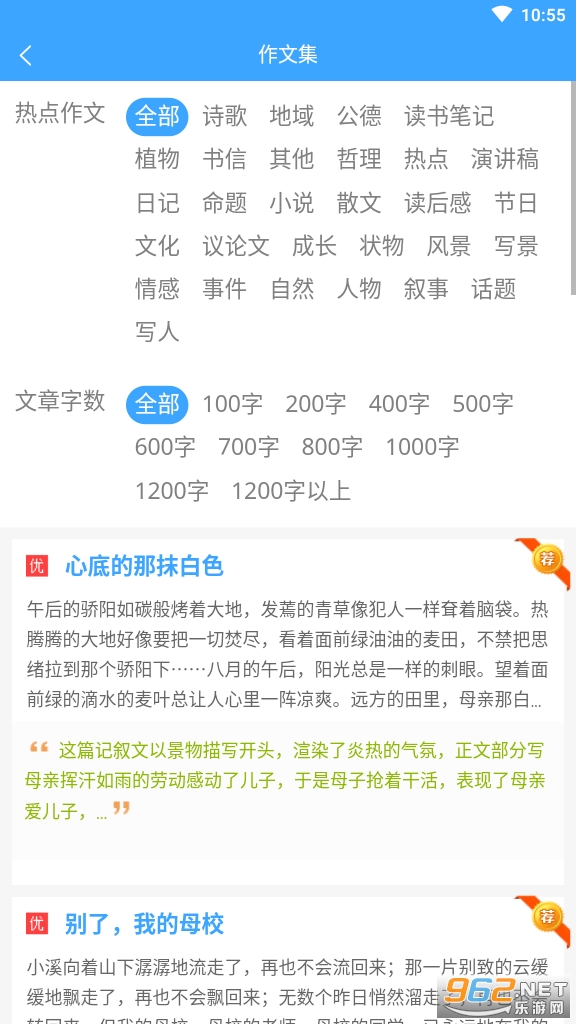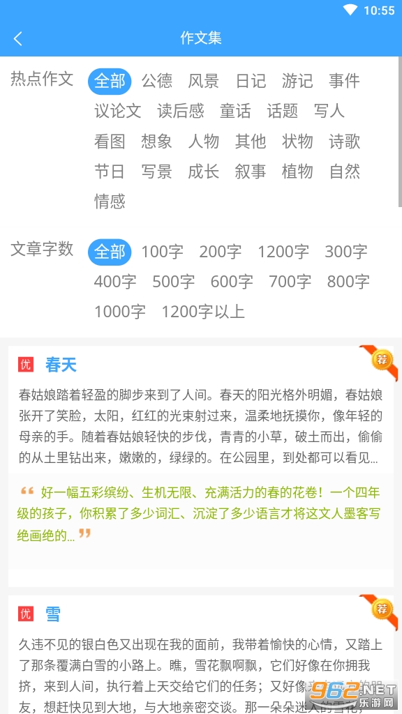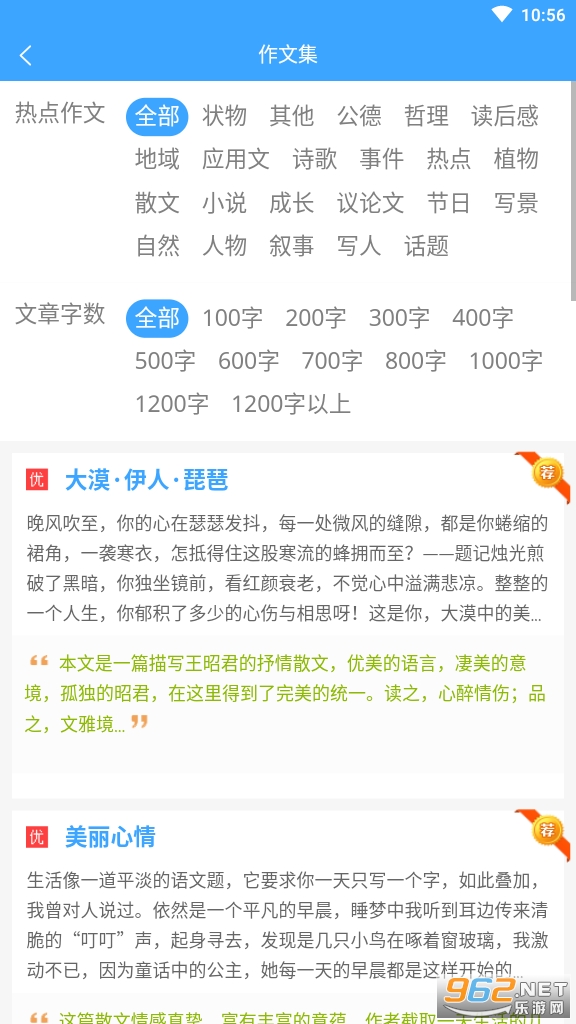 3、用户还可以针对不同的关键词来对于作文进行查找,还有字数筛选的功能,保证用户可以最快的找到最适合自己的作文。