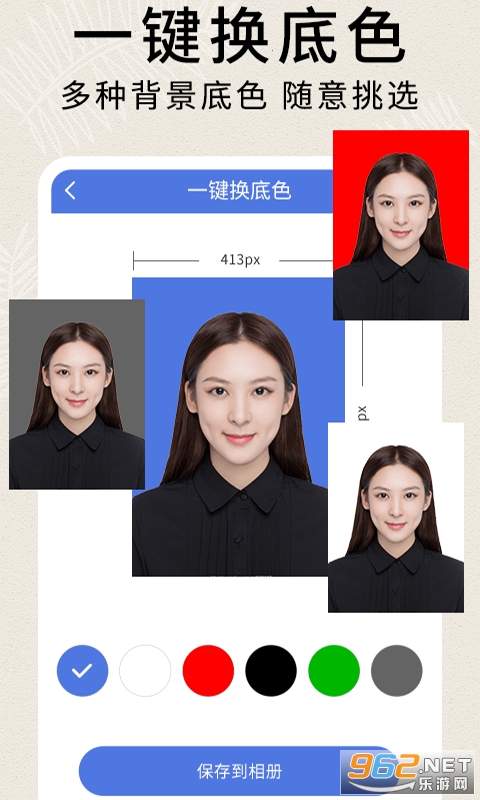 2、快速换底,白底证件照、红底证件照、蓝底证件照一键生成节约时间。