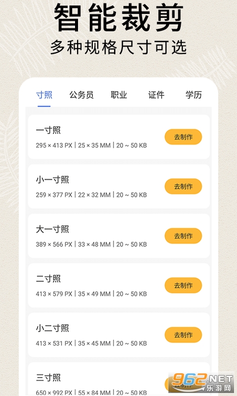 1、制作属于你的最美证件照,智能证件照片一键美颜,让您的证件照美美哒。