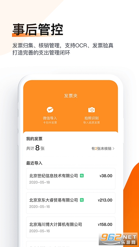 -通过App付、虚拟卡付和网银付三种支付方式,实现企业支出场景全覆盖,带来企业支付、统一结算、告别报销的创新体验。