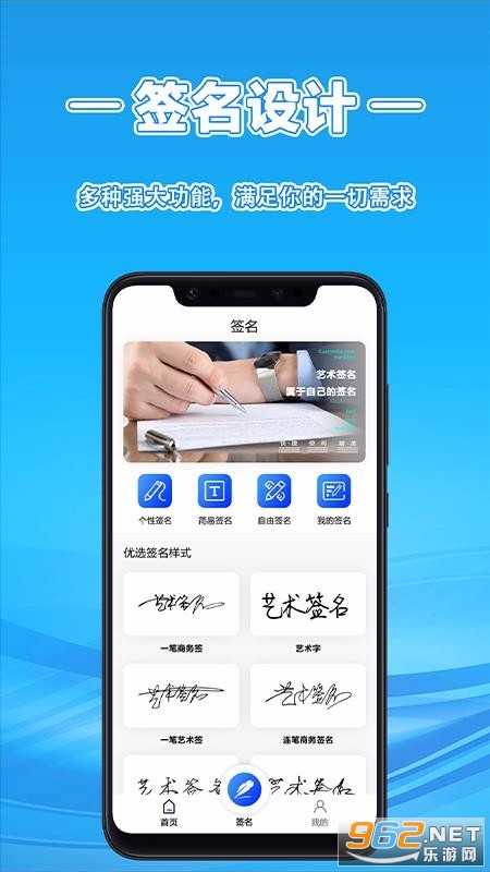 《名字设计软件》是一款非常好用的个性签名软件,这款软件可以对自己的名字进行设计,可以自定义设计字库等,用户可以在白板上自由的签字书写,发挥自己的个性化签名特点,签写出属于自己风格的作品,感兴趣的朋友欢迎来962下载体验试试吧!