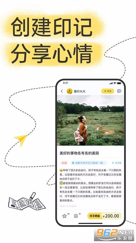 2、一键即可创建印记,并分享自己的旅游心情,认识更多旅游爱好者;