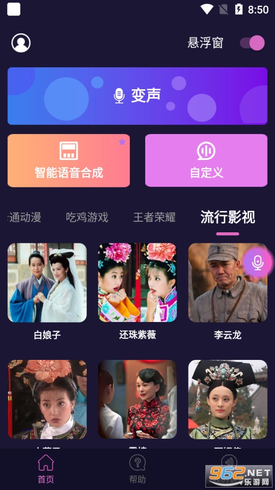 2.外置悬浮窗自带变声器编辑和万条语音包,撩汉撩妹必备!