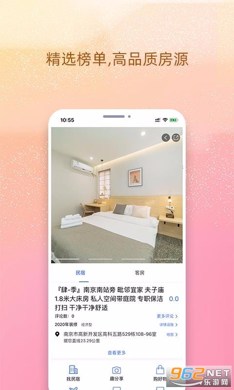 《我的民宿官方版》是一款非常给力的住宿服务软件,这款软件为用户提供最好最棒的民宿预定工具,为你外出旅行办公提供一个温暖的港湾,让你花的更少,住的更好,软件为用户呈现的都是实时的房源,感兴趣的朋友欢迎来962下载试试吧!