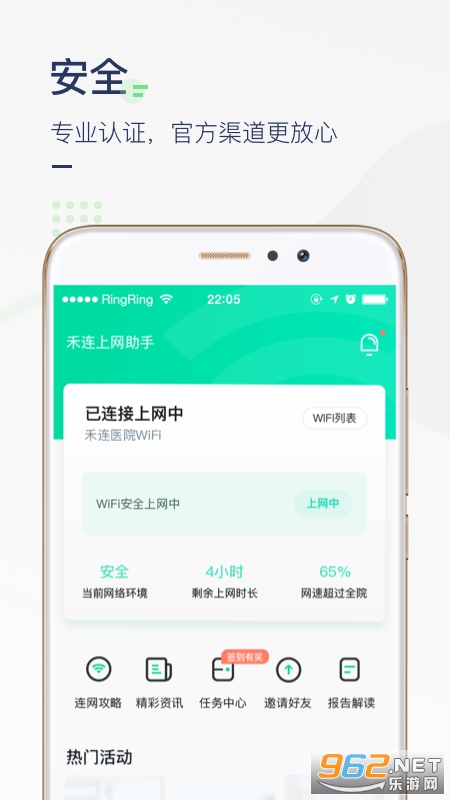 医院上网助手由禾连科技与全国各大医院联合打造,为在医院的患者及其家属提供安全高速的免费wifi网络。