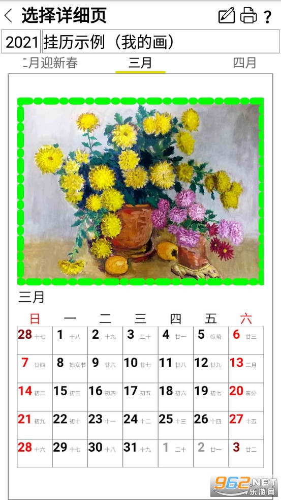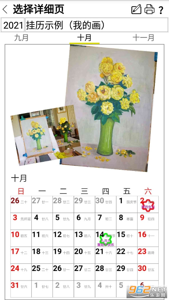软件操作还是很简单,选择自己需要的日历模板,然后可以进行编辑,比如上次自己喜欢的图片,将特定的日子进行标记,可以作为电子日历,也可以将其打印出来,有需要的朋友可以下载试试。