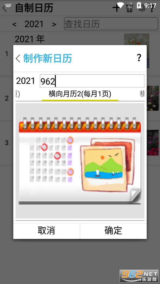 1,本应用预备了多种类型的日历雏形,例如:立式挂历,横式台历等。