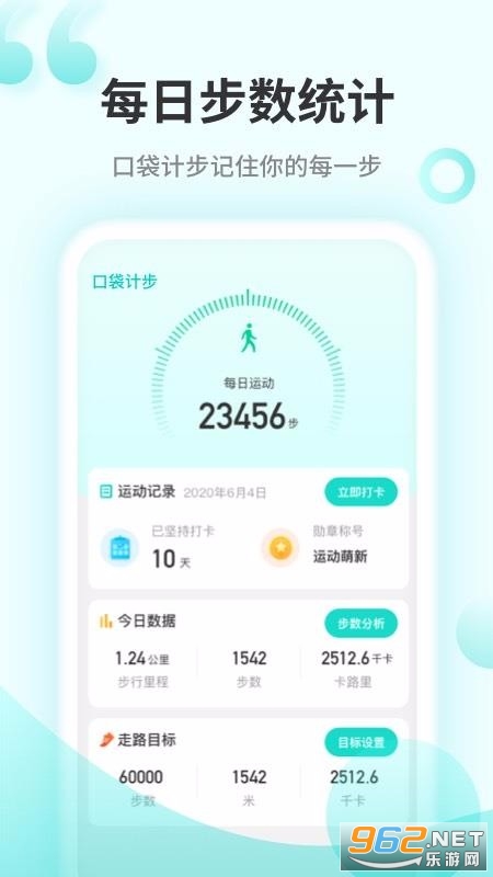 《口袋计步app》是一款非常给力轻松的手机运动赚钱软件,简单的赚钱方式方法,操作也方便,安装也简单,非常专业的计步算法系统,可以为用户带来高效的步数统计服务,只要将软件安装到手机里面就能轻松获取计步服务,感兴趣欢迎来962下载试试吧!