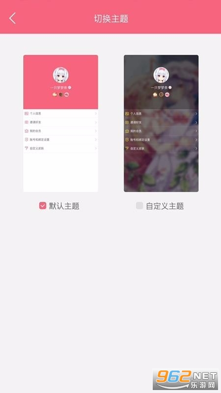 1、拥有两种主题切换选择,在切换主题页面中提供了默认主题、自定义主题两种不同主题切换选择内容;